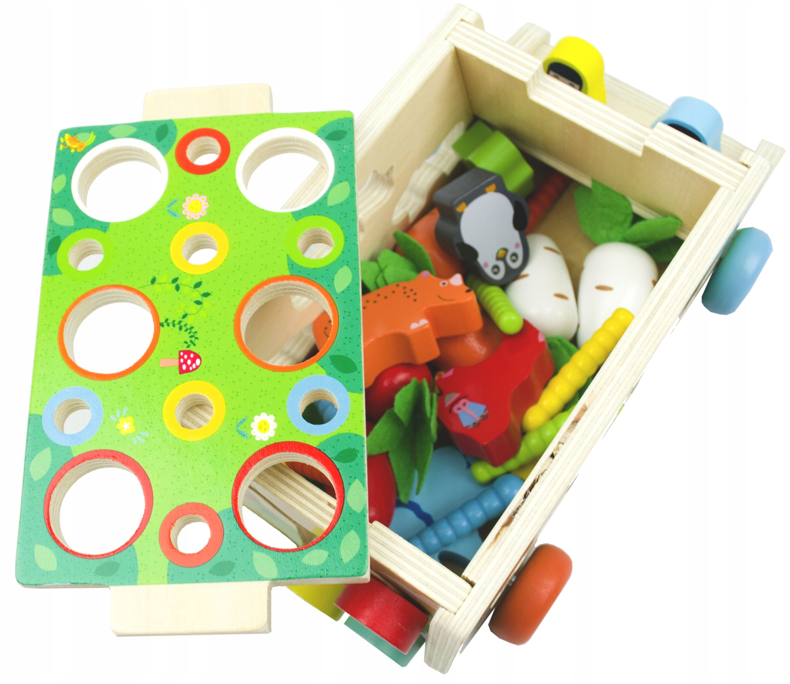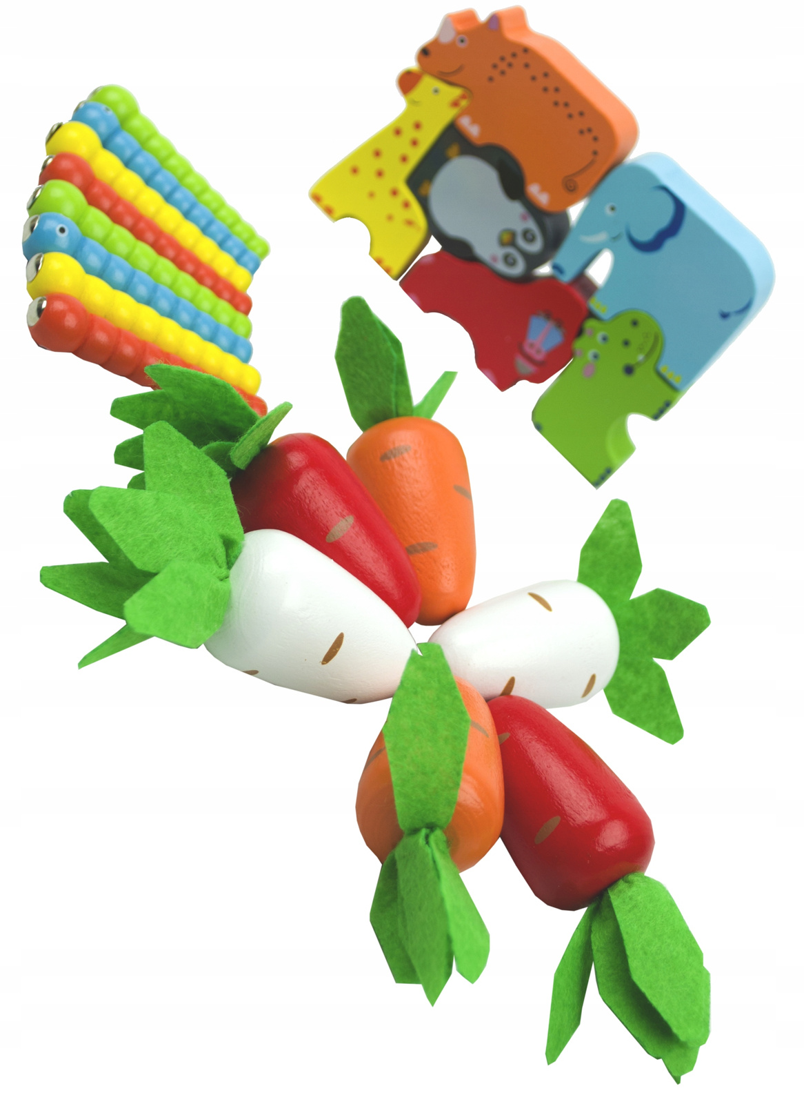 DREWNIANY SORTER / KLOCKI WARZYWA / ZŁAP ROBAKA / PUZZLE / MAGNETYCZNE POSTACI / ZESTAW MONTESSORI / OBROTOWE KOŁA