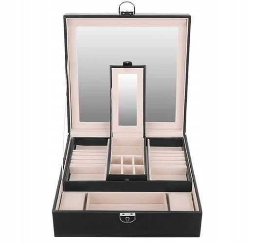 Eleganckie Pojemne Pudełko Kuferek na Biżuterię Zegarki Szkatułka Organizer