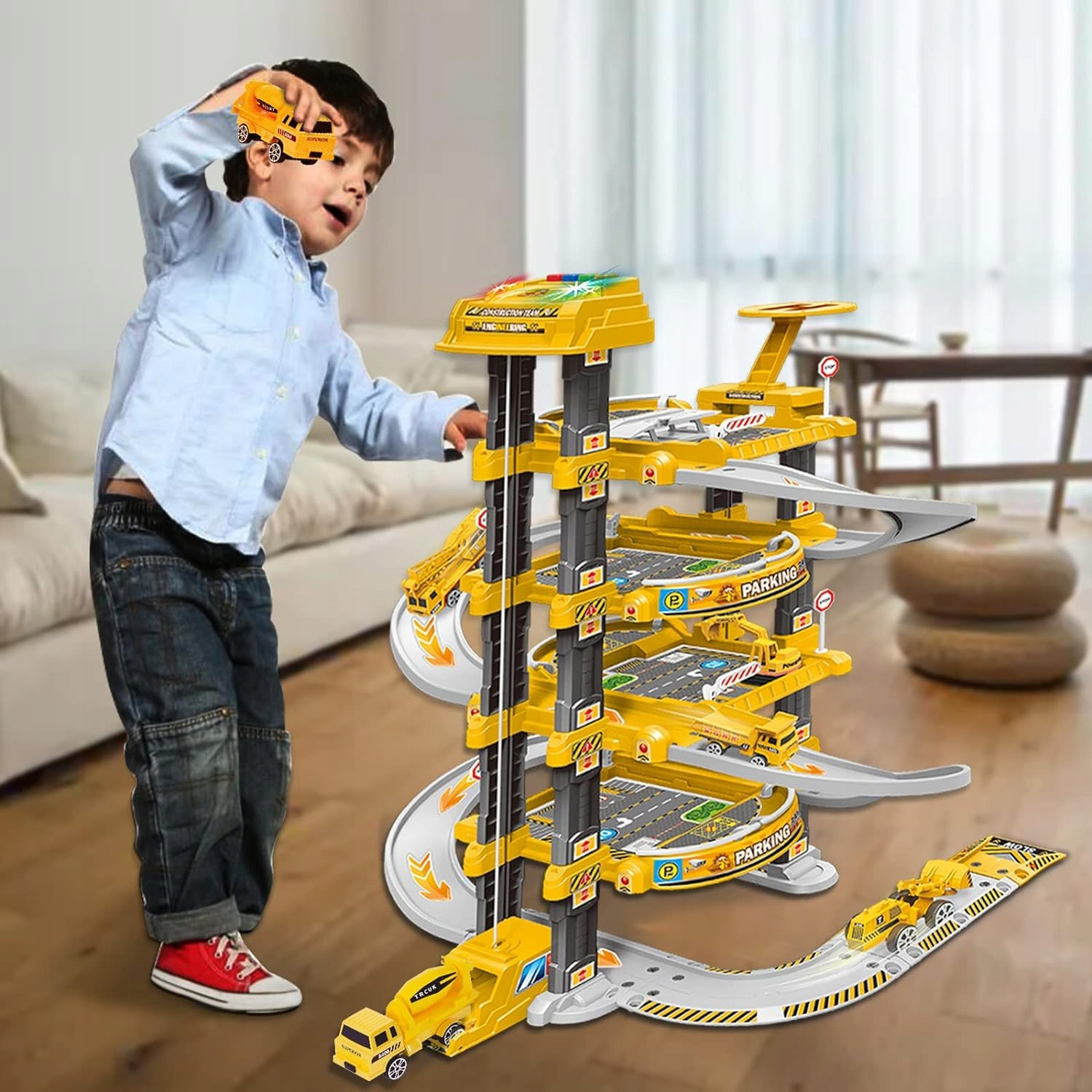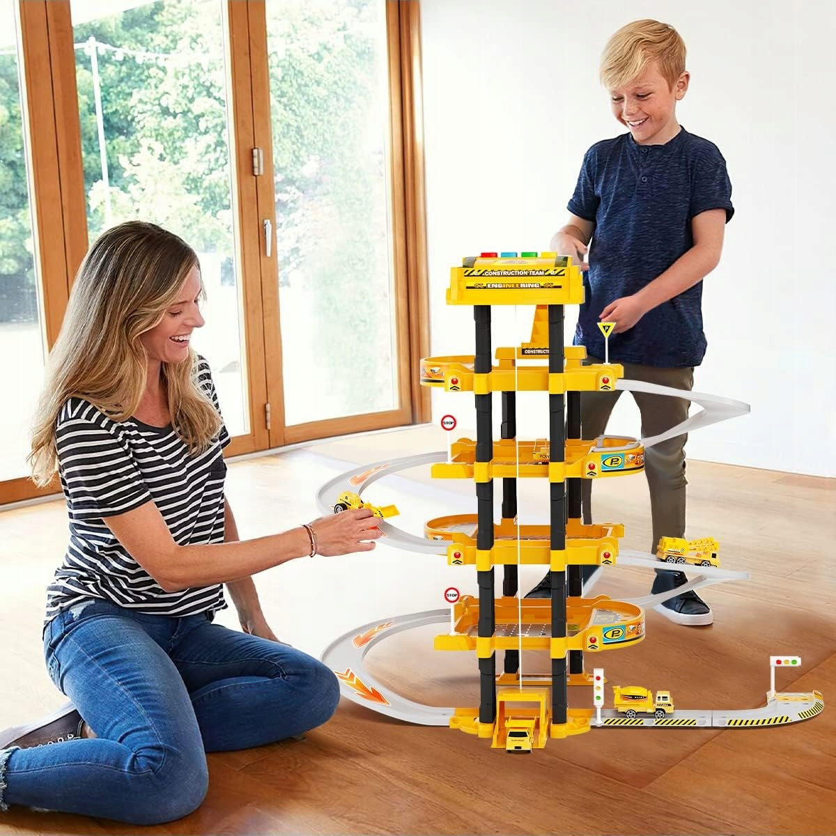 Duży garaż z elektryczną windą resorakami i helikopterem + Mata miasta 78 cm
