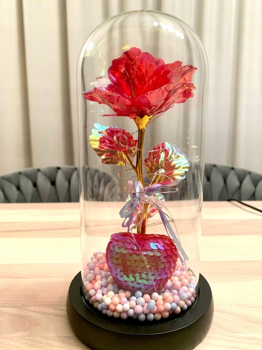 PRZEPIĘKNA DEKORACJA – sztuczna róża w szkle zachowuje swoje piękno na zawsze bo nie więdnie. Jest to wspaniały gadżet który może służyć jako dekoracja domu, czy stołów podczas przyjęć itp, które możesz wykorzystać do stworzenia romantycznego nastroju.