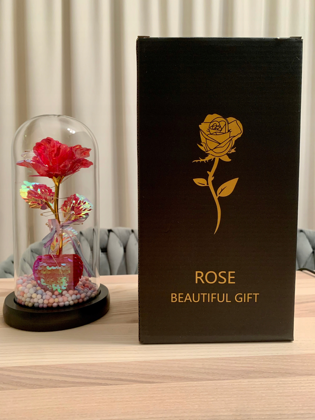WIECZNA RÓŻA W SZKLE ŚWIECĄCA + PUDEŁKO