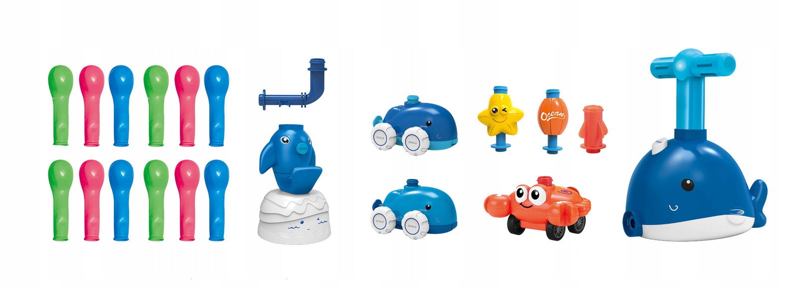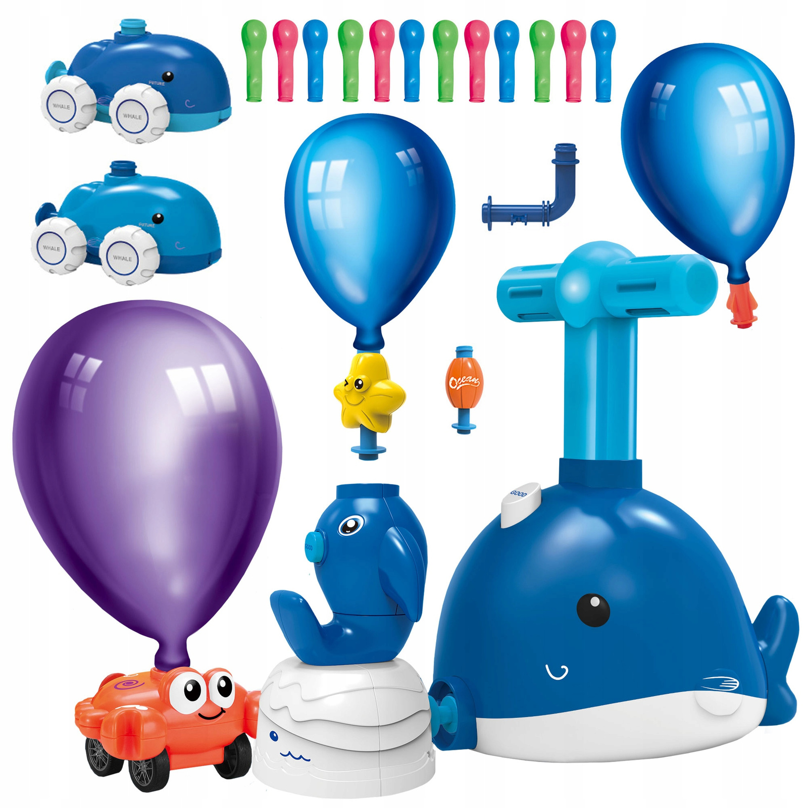 Uwaga! Kolory elementów takich jak auta, mała wyrzutnia, balony są losowe.